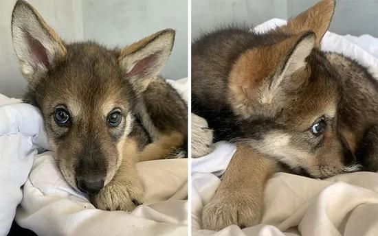 小时候的小狼崽,真的跟小奶狗好像啊!圆溜溜的眼睛,大大的耳朵,怯怯的看着这个新世界。