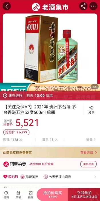 责任编辑:彭佳兵财联社(成都,记者 熊嘉楠)讯,此前行业竞争加剧叠加消费升级致白酒企业纷纷涨价,但在此轮涨价潮中却未见“老大”茅台的身影。不过在近日茅台新品面世后,其市场价瞬间飙至5000+,更有平台标出6999元/瓶的抢拍价。飞天茅台市场价已远超五粮液(297.890, -0.66, -0.22%)普五、国窖1573等一线名酒,而该新品更是将上述价差扩大。
